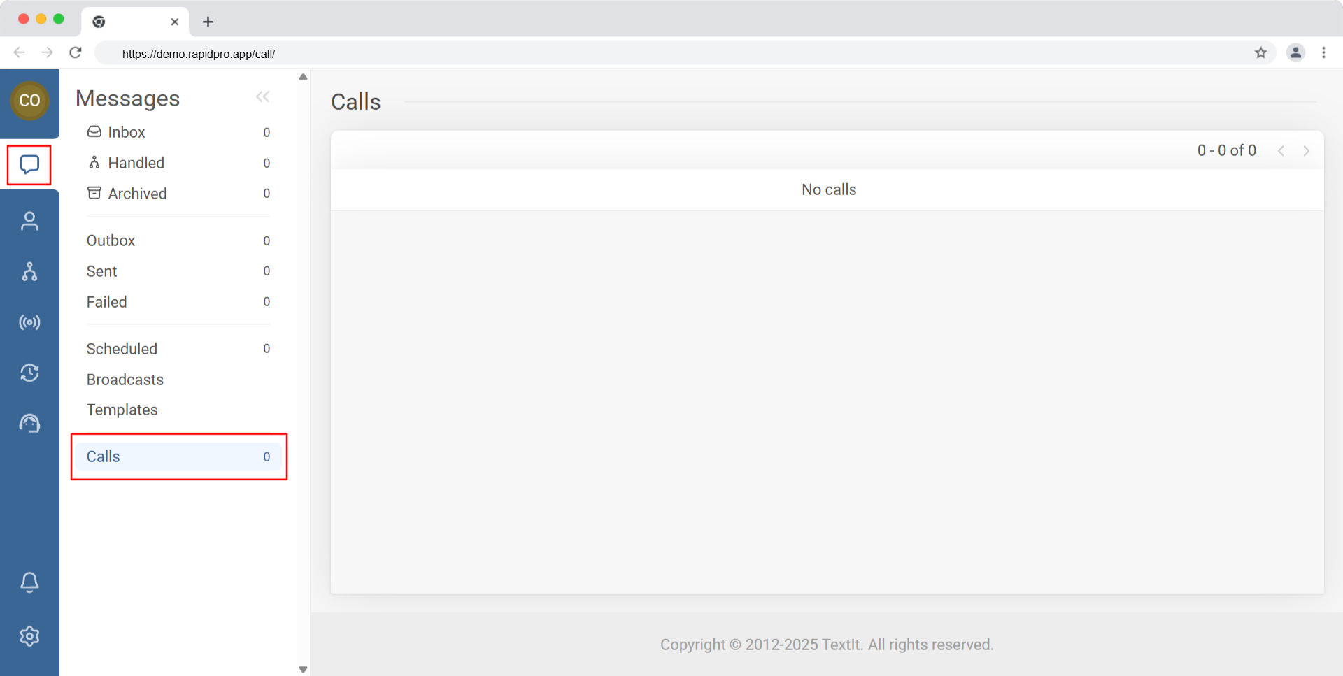 - In your RapidPro.app workspace, open the Messages section.