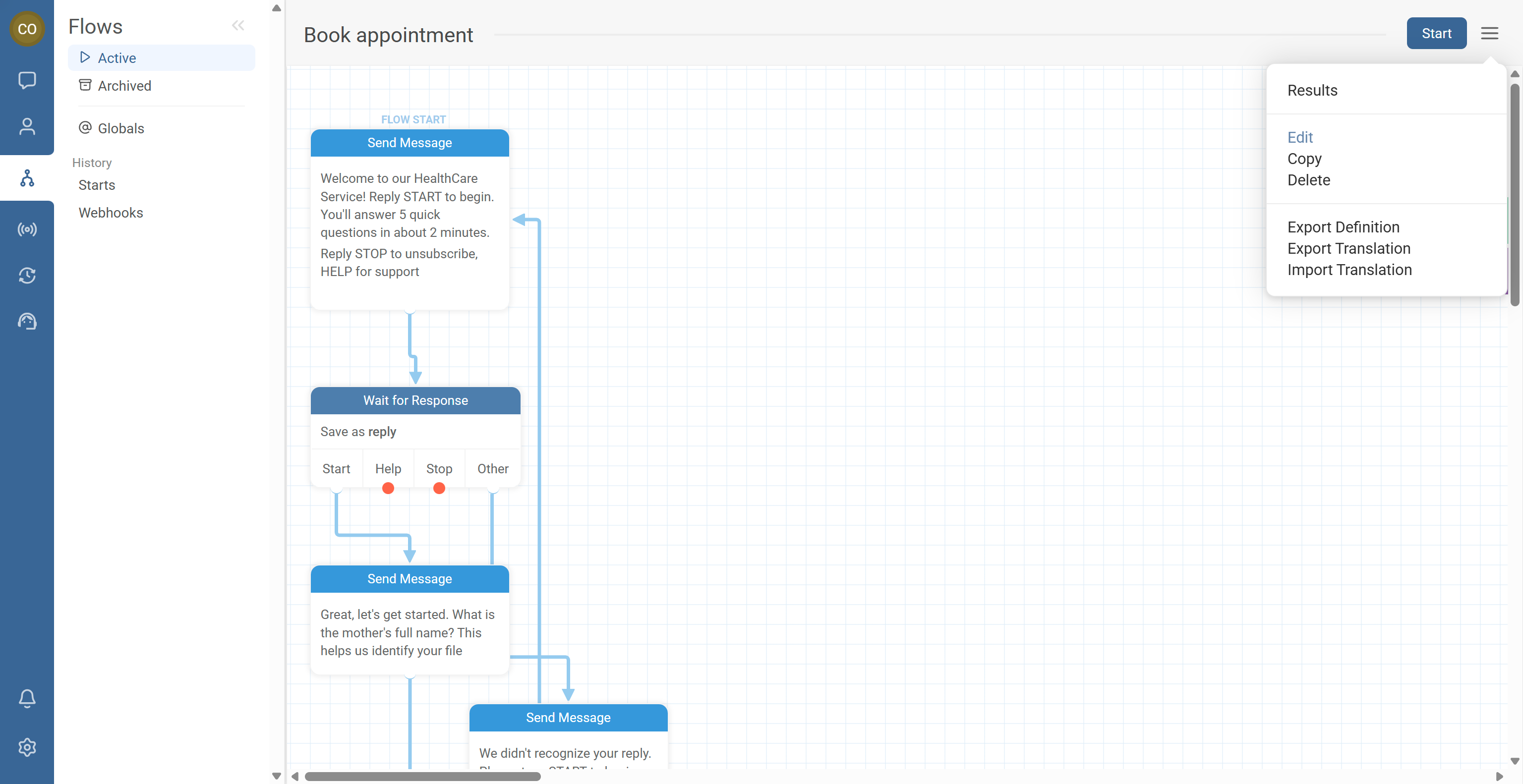 - Start the flow with a test contact.