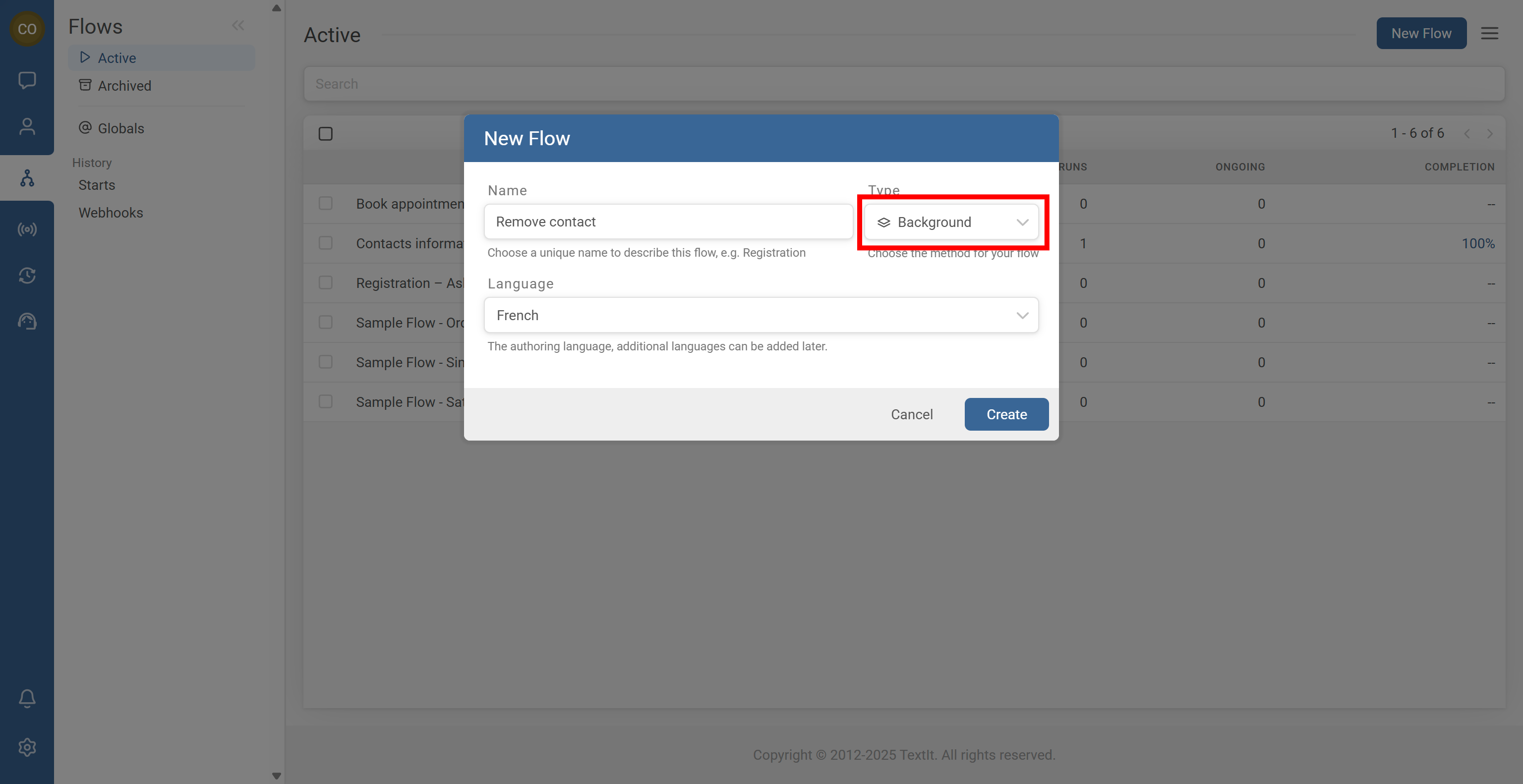 1. Go to Flows and create a new Background Flow.