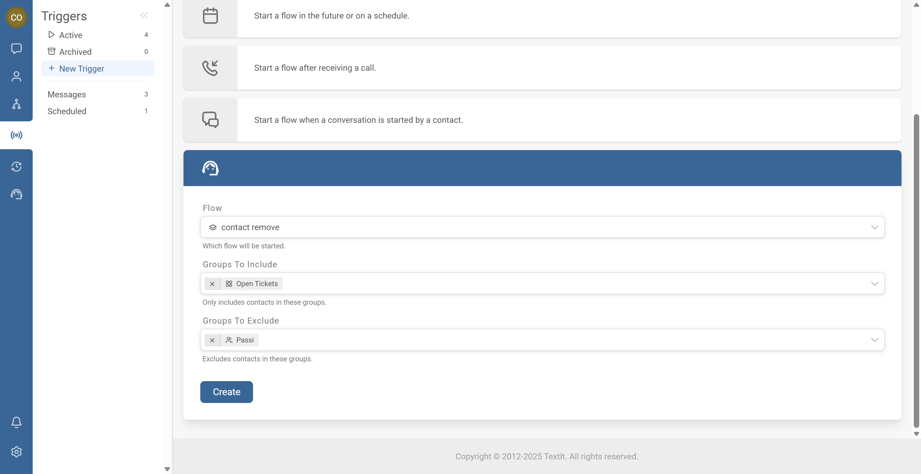 Note: Group filters apply at trigger time. If you include/exclude groups, only contacts matching those rules when the ticket closes will enter the flow.